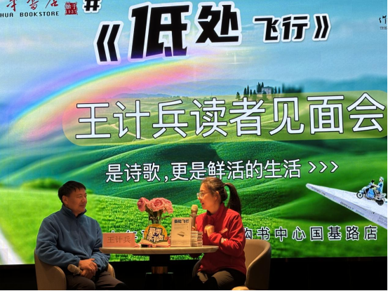 活動現場,王計兵還展示了自己的詩集《低處飛行》,并深情朗誦了書中代表作。他的詩歌語言質樸而深情,讓在場的每一個人都感受到了詩歌的力量和美好。此外,他還與讀者們進行了互動交流,回答了他們關于詩歌創作、人生哲學等方面的問題。其中談到關于子女教育的問題時,王老師表示:“只要孩子付出了自己最大的努力,做到不后悔就是最好的結果。”