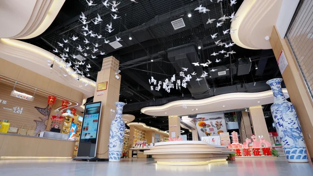 以“殷商文化”為核心的商丘市新華書店凱旋路店,營業(yè)面積達(dá)3000平方米,店內(nèi)陳列覆蓋社科、文學(xué)、藝術(shù)、科技、生活、少兒、教育等圖書4萬余種、10萬余冊,并設(shè)置了文化閱讀、多元文創(chuàng)、藝術(shù)展示、交流分享、AI自習(xí)室等多個專區(qū),是一個集文化學(xué)習(xí)、社交互動、文藝展覽于一體的多功能文化閱讀空間。在空間表達(dá)上,凱旋路店深挖地域文化元素,特別是“玄鳥生商”的甲骨文飛鳥造型環(huán)頂一樓整個大廳,藝術(shù)區(qū)的“梁園八景”古樸燈箱與文房四寶交相呼應(yīng)營造典雅文化氛圍,李白《梁園吟》的石壁雕刻讓很多前來的家長和孩子駐足欣賞、輕輕吟誦,以及“應(yīng)天文化講堂”活動專區(qū)舉辦的“朗讀者沙龍”“我是經(jīng)典傳誦人”等系列豐富閱讀活動,為讀者提供高品質(zhì)的文化體驗。此外,凱旋路店積極探索“文化+科技”的創(chuàng)新融合,在三樓和負(fù)一樓打造的數(shù)智AI自習(xí)室和科普研學(xué)實踐基地即將落地,為讀者帶來智能化、趣味性的全新體驗。