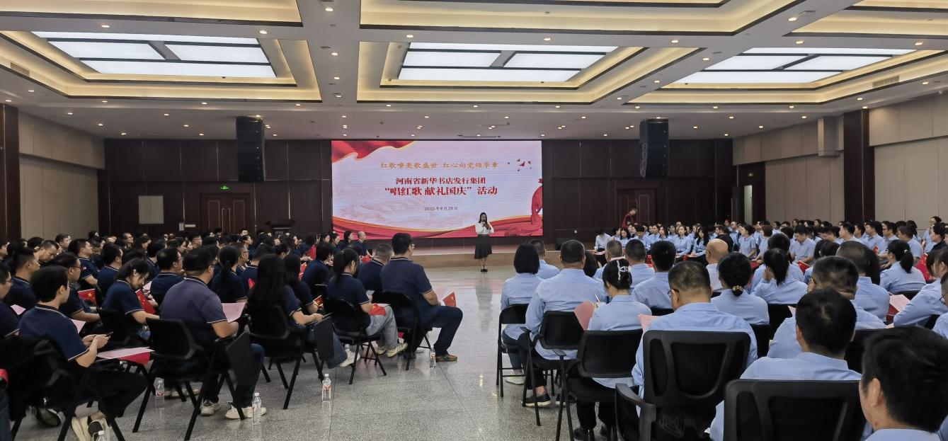 為熱烈慶祝中華人民共和國成立76周年,傳承紅色基因,凝聚奮進力量,9月29日,河南省新華書店發行集團以“紅歌嘹亮歌盛世 紅心向黨頌華章”為主題,舉辦“唱紅歌 獻禮國慶”活動。發行集團班子成員與370余名黨員干部職工參加活動,共同用嘹亮歌聲抒發愛國情懷。