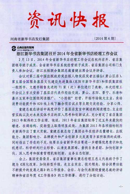 來源:河南省新華書店發行集團有限公司  作者:河南省新華書店發行集團有限公司  發布時間:2014/2/27 9:09:51  閱讀次數:10140