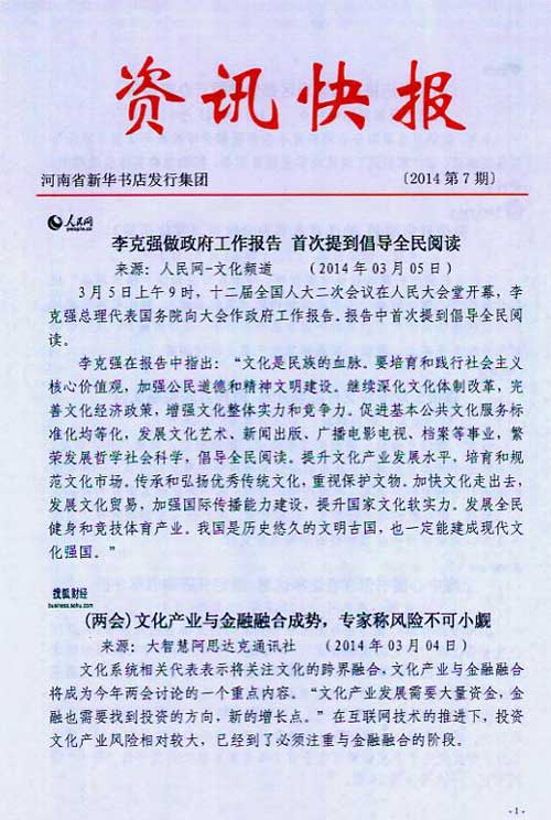 來源:河南省新華書店發行集團有限公司  作者:河南省新華書店發行集團有限公司  發布時間:2014/3/7 10:06:31  閱讀次數:10266