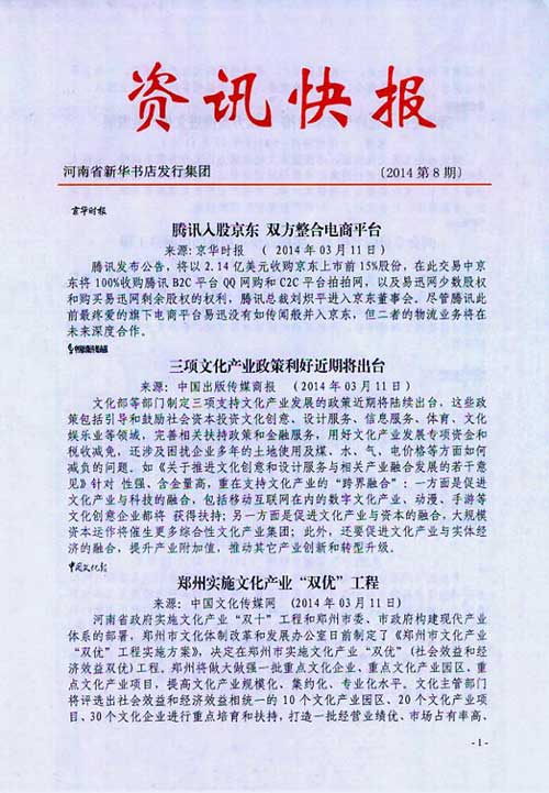 來源:河南省新華書店發行集團有限公司  作者:河南省新華書店發行集團有限公司  發布時間:2014/3/14 10:45:53  閱讀次數:10066