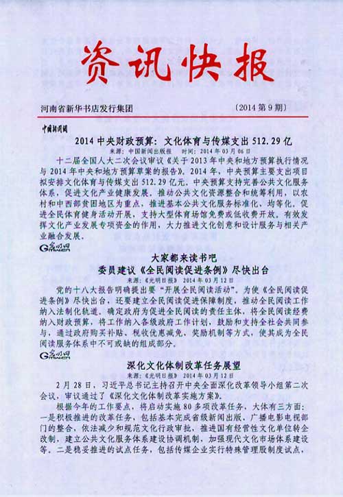 來源:河南省新華書店發行集團有限公司  作者:河南省新華書店發行集團有限公司  發布時間:2014/3/14 10:46:22  閱讀次數:11918