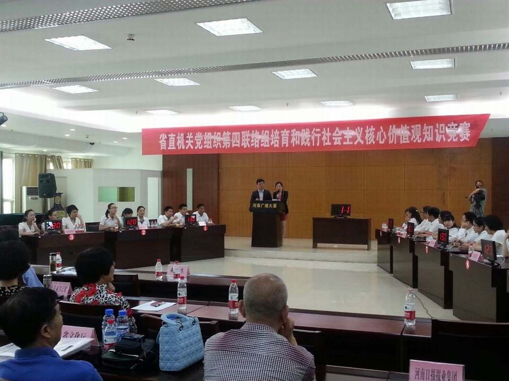 5月21日上午,由省委宣傳部主辦的省直機(jī)關(guān)黨組織第四聯(lián)絡(luò)組培育和踐行社會(huì)主義核心價(jià)值觀知識(shí)競(jìng)賽在省廣電局舉行,河南省新華書(shū)店發(fā)行集團(tuán)選派的兩名選手牛聰穎、胡丹和中學(xué)生學(xué)習(xí)報(bào)社選派的選手李媛組成的中原出版?zhèn)髅郊瘓F(tuán)代表隊(duì)經(jīng)過(guò)激烈角逐,最終在18個(gè)代表隊(duì)中脫穎而出榮獲一等獎(jiǎng),并將被推薦參加下一輪由省委省直工委組織實(shí)施的培育和踐行社會(huì)主義核心價(jià)值觀知識(shí)競(jìng)賽選拔賽。 為深入貫徹落實(shí)黨的十八大、十八屆三中全會(huì)精神和中央《關(guān)于培育和踐行社會(huì)主義核心價(jià)值觀的意見(jiàn)》、省委關(guān)于推進(jìn)文明河南建設(shè)的部署要求,省委省直工委從3月份開(kāi)始,面向省直和中央駐豫各單位開(kāi)展了培育和踐行社會(huì)主義核心價(jià)值觀知識(shí)競(jìng)賽活動(dòng)。發(fā)行集團(tuán)接到中原出版?zhèn)髅郊瘓F(tuán)轉(zhuǎn)發(fā)的《關(guān)于組織舉辦省直機(jī)關(guān)培育和踐行社會(huì)主義核心價(jià)值觀知識(shí)競(jìng)賽的通知》后,對(duì)此項(xiàng)活動(dòng)高度重視、積極響應(yīng),第一時(shí)間組織挑選優(yōu)秀隊(duì)員參加中原出版?zhèn)髅郊瘓F(tuán)代表隊(duì),并在訓(xùn)練時(shí)間、學(xué)習(xí)資料等方面提供保障,使其全身心投入到緊張的準(zhǔn)備工作之中,爭(zhēng)取在比賽中取得好成績(jī),為發(fā)行集團(tuán)、中原出版?zhèn)髅郊瘓F(tuán)爭(zhēng)光添彩。 在省直機(jī)關(guān)黨組織第四聯(lián)絡(luò)組培育和踐行社會(huì)主義核心價(jià)值觀知識(shí)競(jìng)賽中,有中共河南省委宣傳部、河南日?qǐng)?bào)報(bào)業(yè)集團(tuán)、河南省廣電局、河南省新聞出版局、中原出版?zhèn)髅郊瘓F(tuán)、新華社河南分社等18家省直和中央駐豫單位參加比賽。本次知識(shí)競(jìng)賽分為必答題、搶答題、風(fēng)險(xiǎn)題、附加題四個(gè)環(huán)節(jié),各參賽隊(duì)基準(zhǔn)分100分,通過(guò)競(jìng)賽環(huán)節(jié)進(jìn)行增減。在比賽中,中原出版?zhèn)髅郊瘓F(tuán)代表隊(duì)的牛聰穎、胡丹、李媛三位隊(duì)員沉著冷靜,答題認(rèn)真,思維敏捷,發(fā)揮出色。她們的精彩表現(xiàn),不時(shí)贏來(lái)現(xiàn)場(chǎng)觀眾的一陣陣掌聲。 通過(guò)激烈角逐,中原出版?zhèn)髅郊瘓F(tuán)和河南省委宣傳部?jī)芍Т黻?duì)最終脫穎而出,獲得一等獎(jiǎng),并將一起代表省直機(jī)關(guān)黨組織第四聯(lián)絡(luò)組參加6月上旬由省委省直工委組織實(shí)施的培育和踐行社會(huì)主義核心價(jià)值觀知識(shí)競(jìng)賽選拔賽。 發(fā)行集團(tuán)公司將以此次參加培育和踐行社會(huì)主義核心價(jià)值觀知識(shí)競(jìng)賽活動(dòng)為契機(jī),認(rèn)真落實(shí)中央《關(guān)于培育和踐行社會(huì)主義核心價(jià)值觀的意見(jiàn)》和省委關(guān)于推進(jìn)文明河南建設(shè)的部署要求,在廣大干部職工中間大力開(kāi)展社會(huì)主義核心價(jià)值觀學(xué)習(xí)教育,引導(dǎo)大家更加深刻理解其科學(xué)內(nèi)涵和精神實(shí)質(zhì),推動(dòng)社會(huì)主義核心價(jià)值觀的廣泛傳播,進(jìn)一步增強(qiáng)對(duì)社會(huì)主義核心價(jià)值觀的認(rèn)知認(rèn)同和培育踐行的自覺(jué)性。